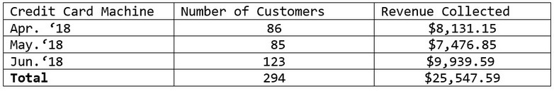 Average cash collection during 3Q2018 were decreased by approximately 1.5% compared to the previous quarter and collection represent approximately 96% of the total revenue sales during third quarter, 2018.The Financial Statements for the operation ending 3Q2018 will be provided and shared for Board’sreview and comments during the regular Board meeting.Merchant Account: Increasing number of customers are using credit/debit cards to make payments for their power needs which shows below by months during 3rd. quarter.